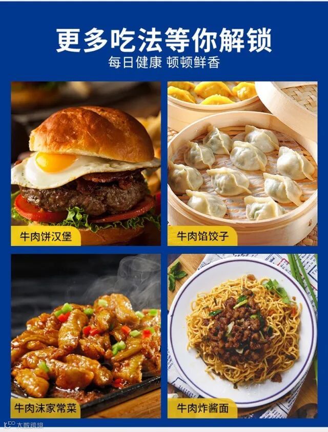 3、牛肉饼已经过加工,可实现多种烹饪方式,汉堡,早餐饼,肉酱意大利面,包饺子,包包子,炒菜等,每片80g,方便食用,怎么做都方便