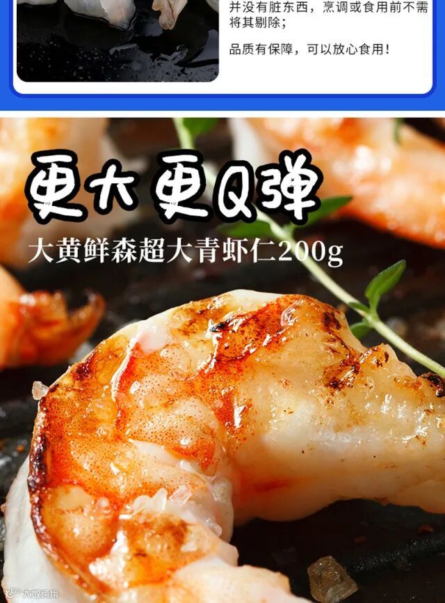【品牌福利】大黄鲜森@青虾仁200g/袋*5袋(赠送阿根廷原切牛汤骨500g/袋) 原价:199元 粉丝群补贴价:149元