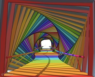 现场装置藉由几何线条的旋转,配合绚丽的缤纷色彩,表现世界的广博与条条大陆通罗马,寓示着孩童的未来有着无限的可能与璀璨。
