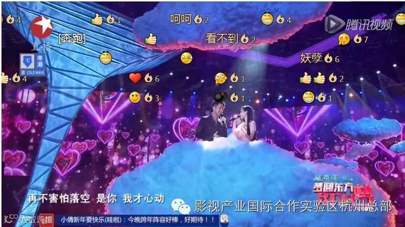 在今年视频网站的跨年大战中,互动成为突显视频网站竞争力的重要指标。一众跨年晚会的网络直播中,腾讯视频联合东方卫视的7路信号直播广受追捧。网友可以在观看晚会的同时利用弹幕进行吐槽,为晚会增添不少欢乐元素。而专注拍摄明星脸部的“特写仔”,由于可以零距离观察嘉宾容颜,在弹幕表现上尤为突出,整台晚会网友互动弹幕数量一举冲到了10万,刷新了行业的新纪录。借力于多终端、多平台的先决条件,这样的实践可为网台互动提供新思路。