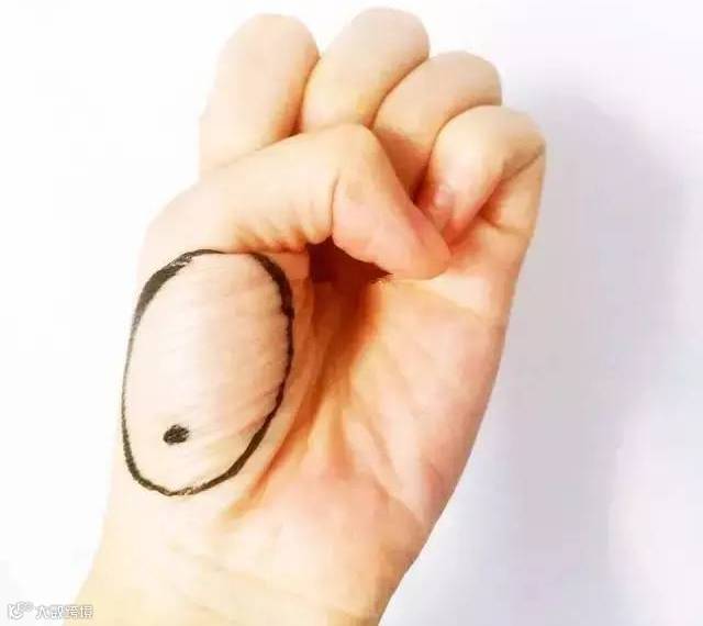 祖先认为,手心为白肉,手背为黄肉,在黄白肉交界处。脾的反射区就是在大拇指赤白肉际处,指尖到第一个关节,请看图。