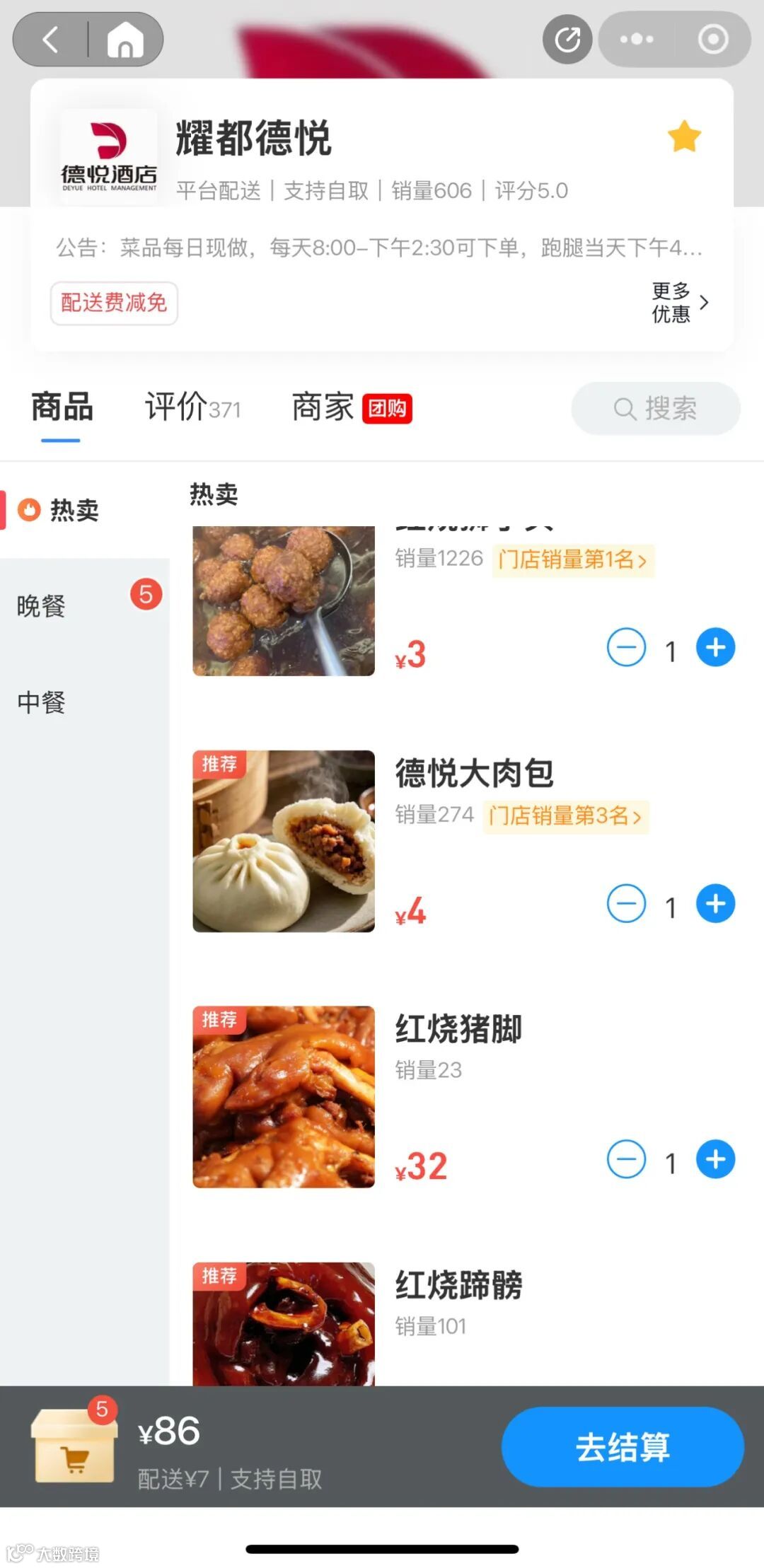 第三步:挑选自己爱吃的菜品,完成后点“去结算”