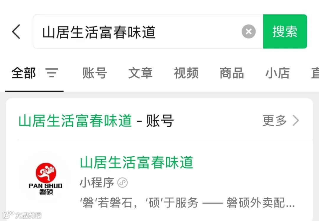 第一步:微信搜索“山居生活富春味道”小程序
