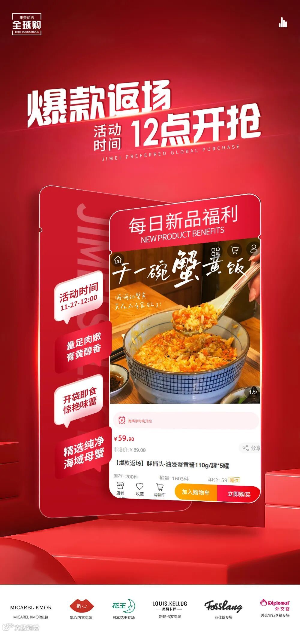 【爆款返场】鲜捕头·油浸蟹黄酱110g/罐*5罐 原价:89元 粉丝群补贴价:59.9元