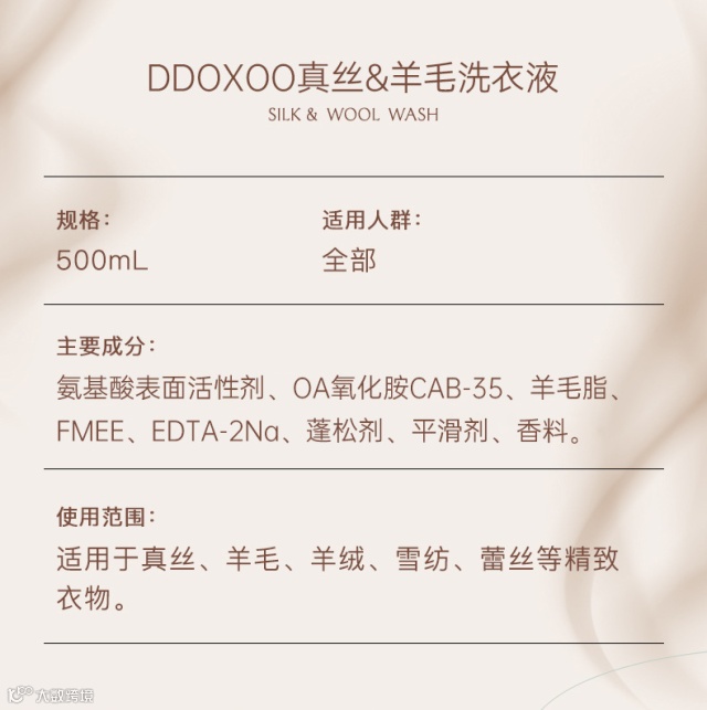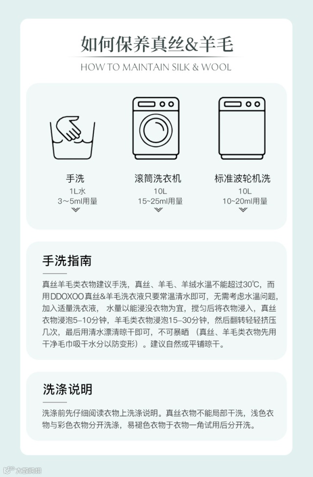 使用范围: 真丝 羊毛 羊绒 雪纺 蕾丝等精致衣物