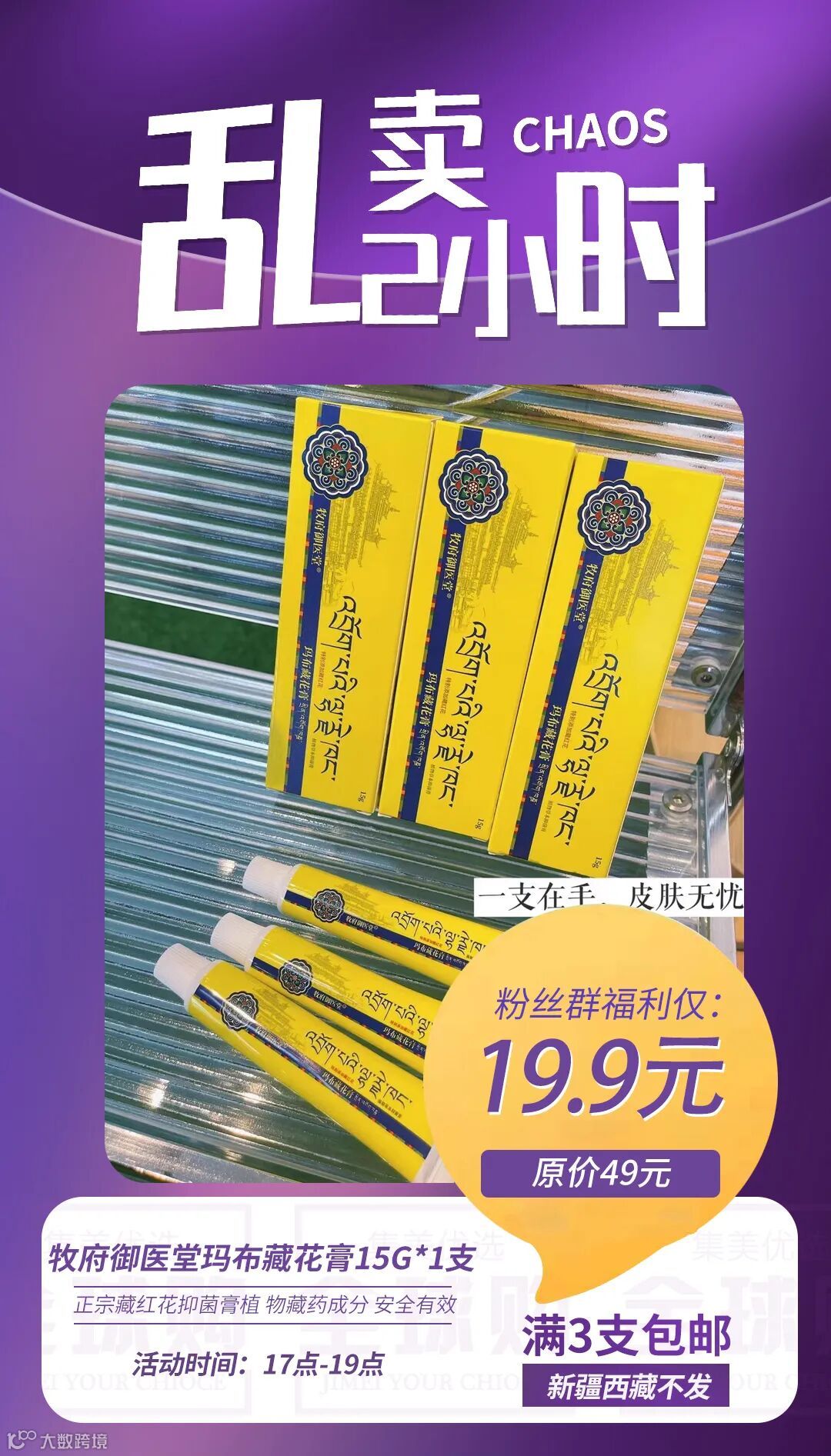【乱卖2小时·满3支包邮】牧府御医堂玛布藏花膏15g*1支 原价:49元 粉丝群补贴价:19.9元