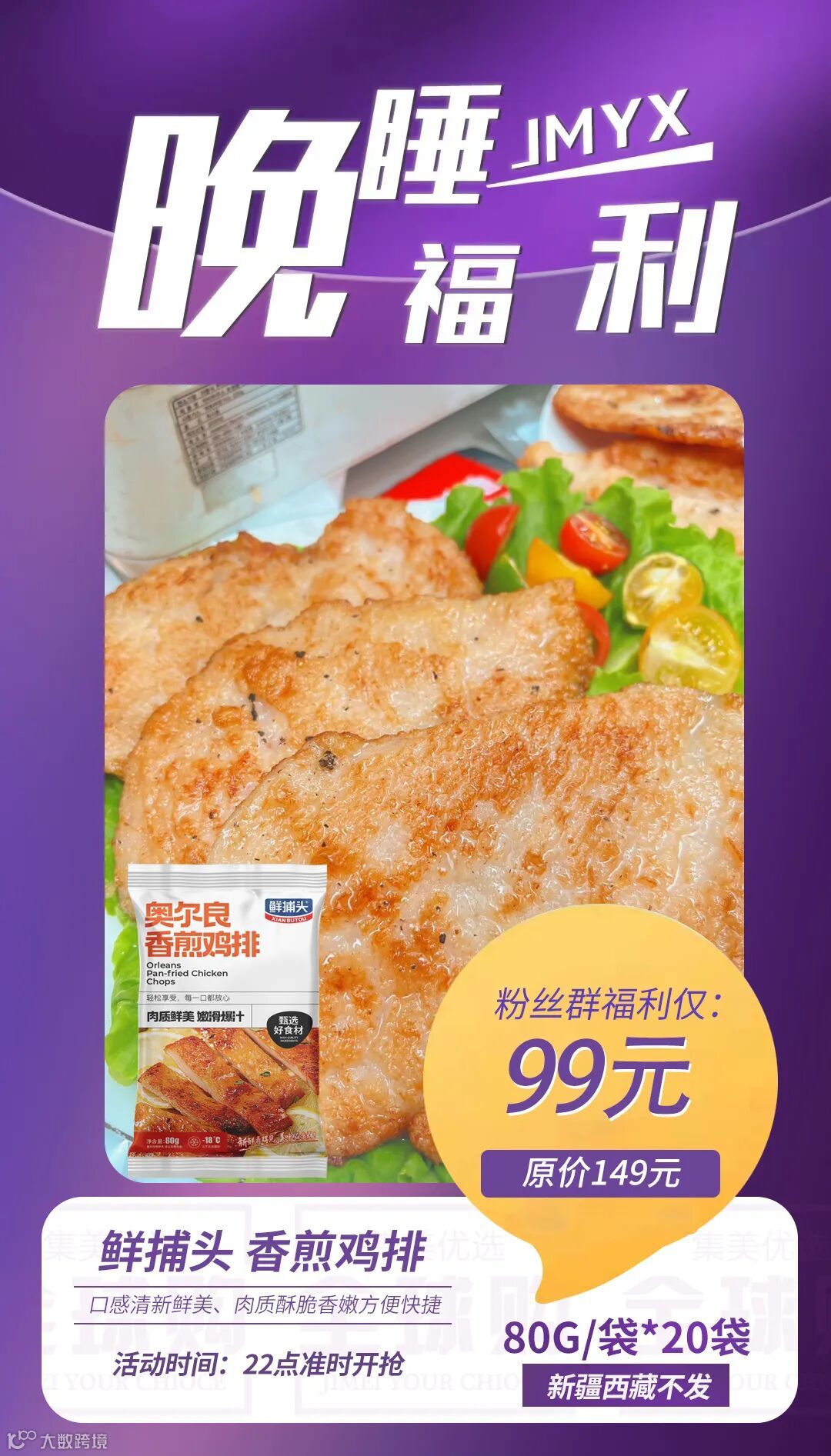 【晚睡福利·顺丰冷链】鲜捕头 | 香煎鸡排80g/袋*20袋 原味/奥尔良可选 原价:149元 粉丝群补贴价:99元
