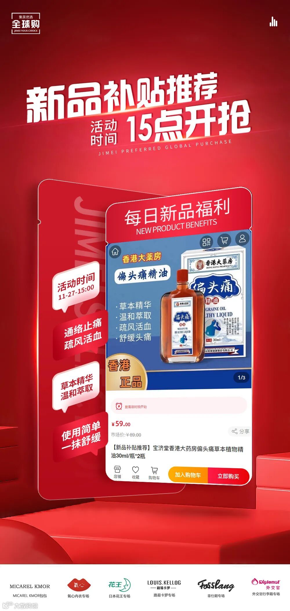 【新品补贴推荐】宝济堂香港大药房偏头痛草本植物精油30ml/瓶*2瓶 原价:89元 粉丝群补贴价:59元