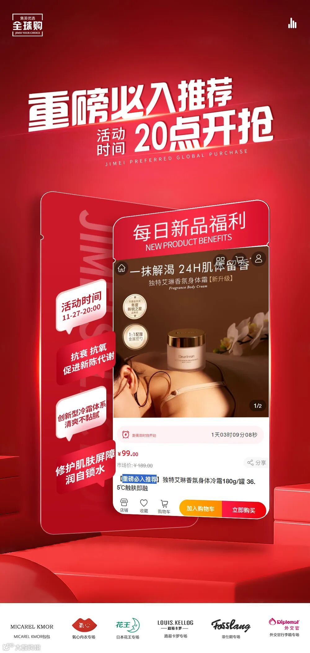 【重磅必入推荐】独特艾琳香氛身体冷霜180g/罐 36.5℃触肤即融 原价:189元 粉丝群补贴价:99元