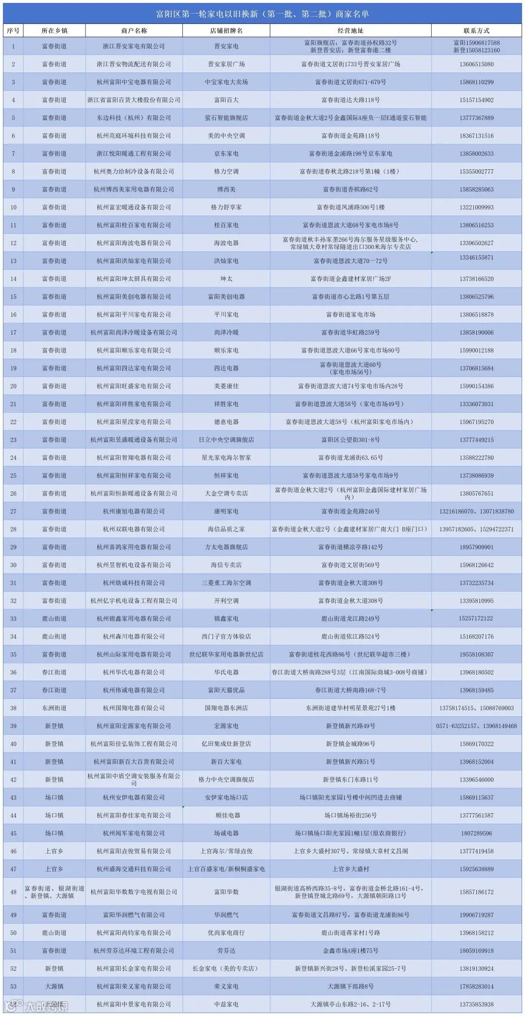 (注意:序号48—54号为此次新增的商家,后续如有新增商家,将及时更新。)