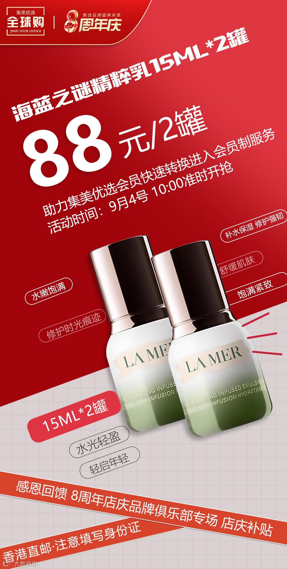【海蓝之谜美妆】LAMER海蓝之谜精粹乳小样15ML*2罐 原价:199元 粉丝群补贴价:88元
