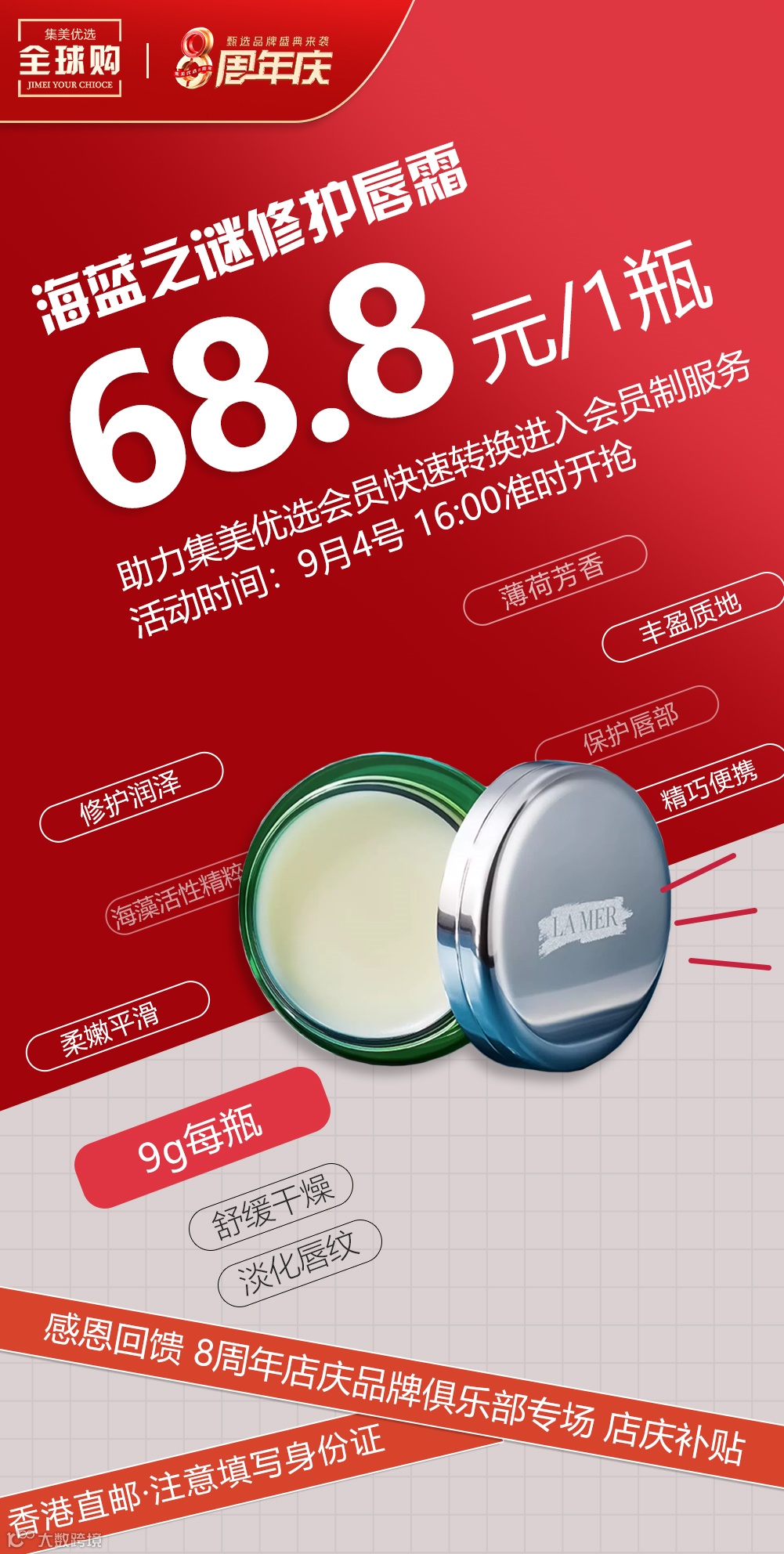 【海蓝之谜美妆】海蓝之谜修护唇膜 舒缓干燥 淡化唇纹 修护润泽 原价:199元 粉丝群补贴价:68.8元