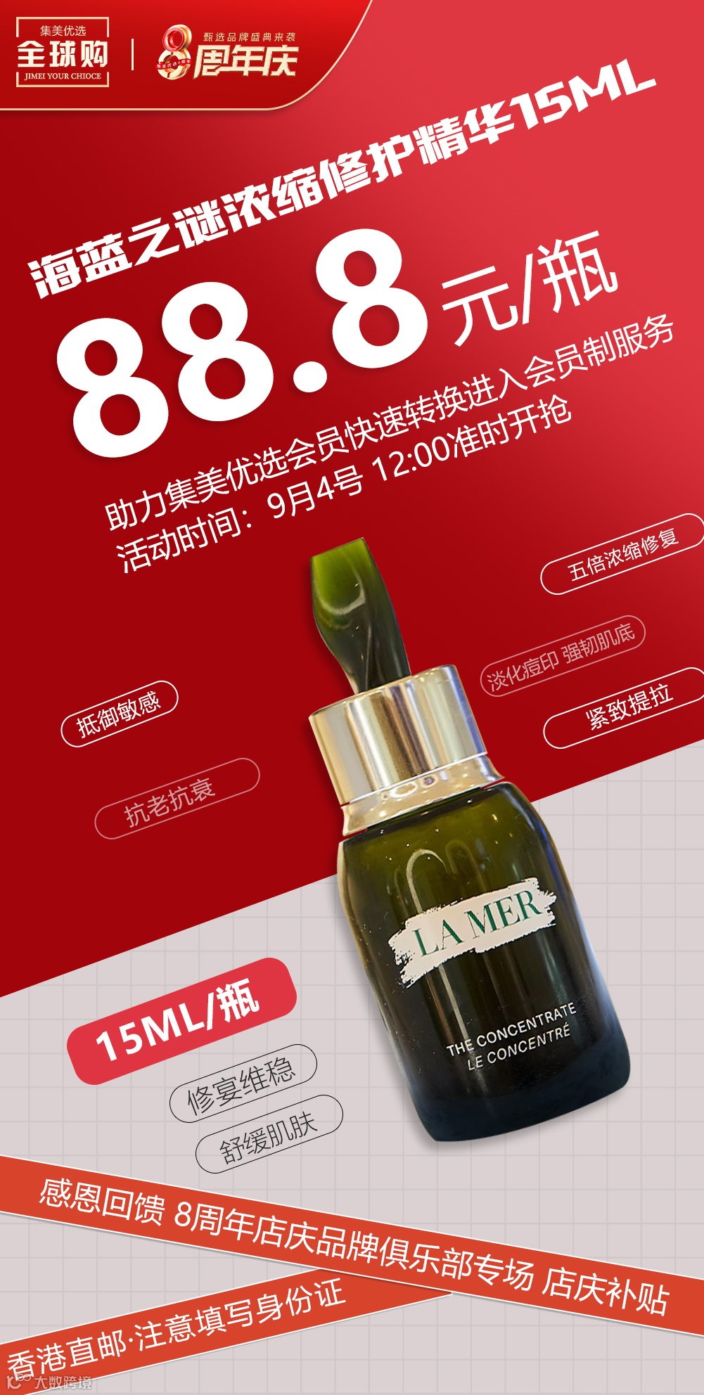 【海蓝之谜美妆】海蓝之谜浓缩修复精华15ml 原价:199元 粉丝群补贴价:88.8元