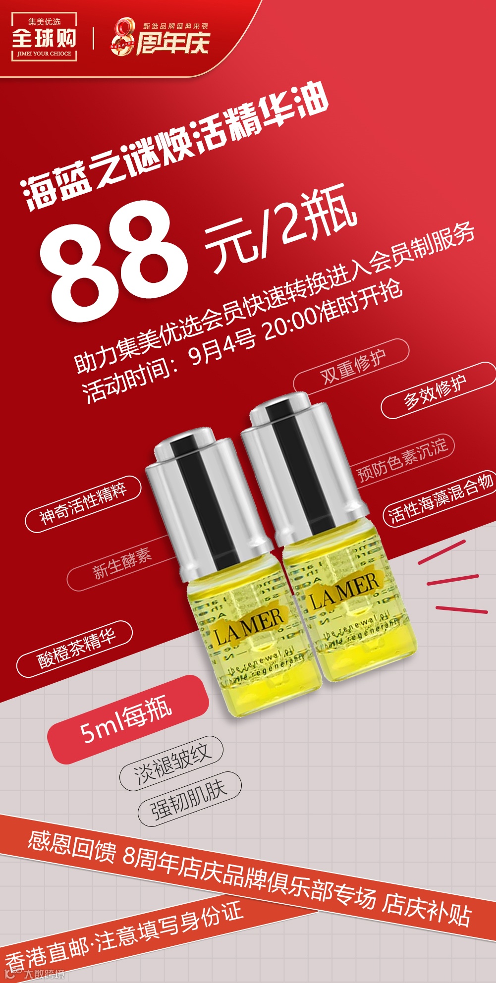 【海蓝之谜美妆】Lamer海蓝之谜焕活精华油万能油修护油中样5ml*2瓶 原价:159元 粉丝群补贴价:88元