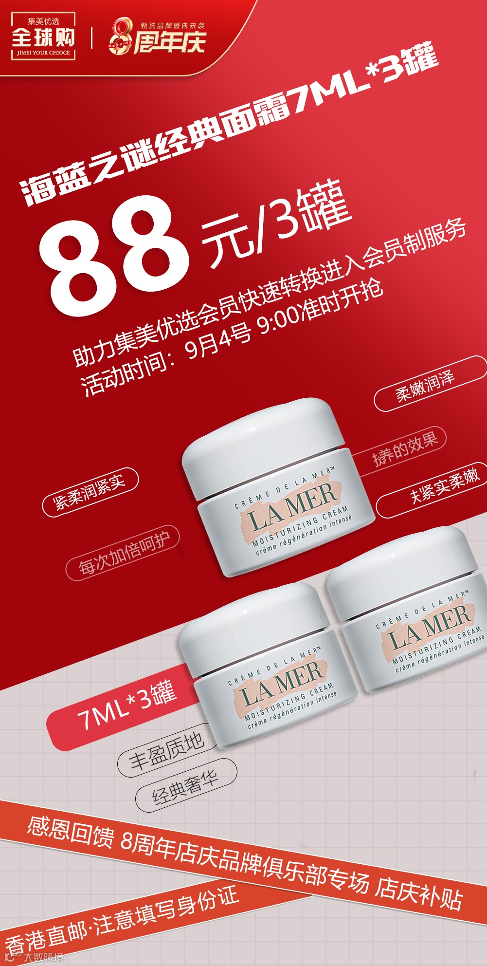 【海蓝之谜美妆】Lamer海蓝之谜经典面霜7ml*3瓶 原价:199元 粉丝群补贴价:88元