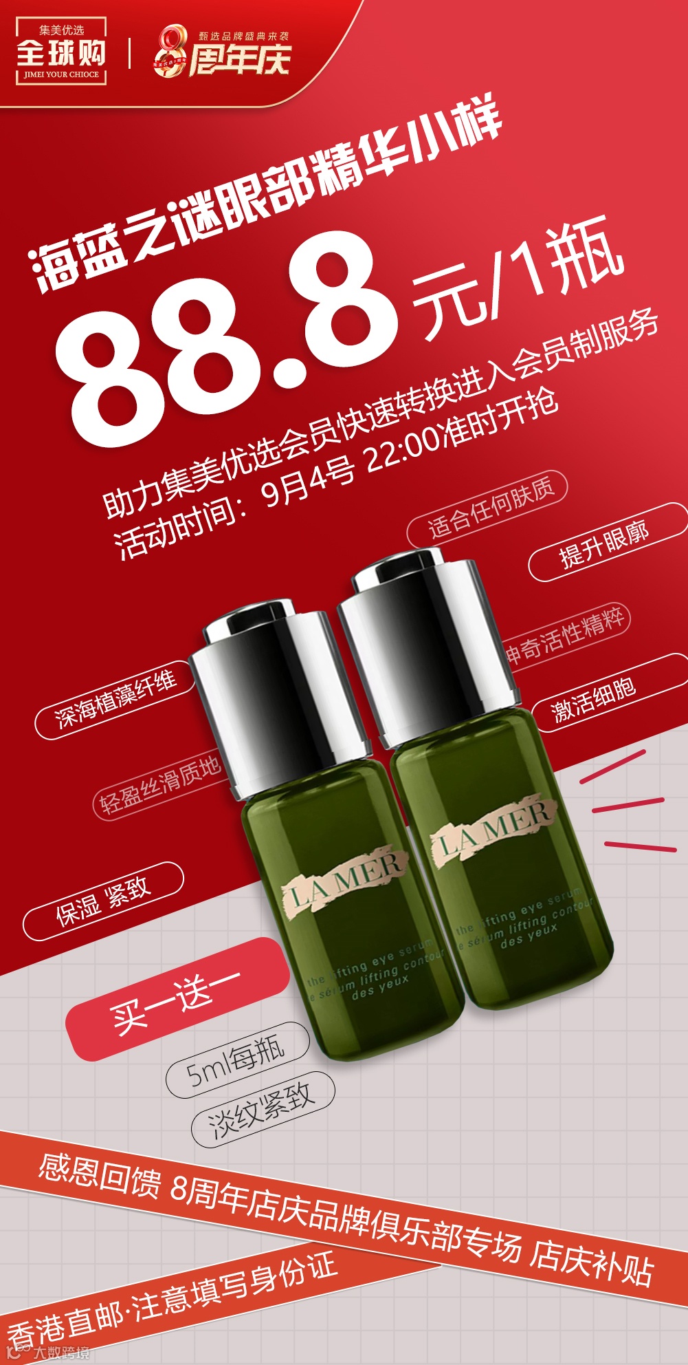 【海蓝之谜美妆·买一送一】Lamer/海蓝之谜 眼部精华小样5ml 原价:159元 粉丝群补贴价:88.8元