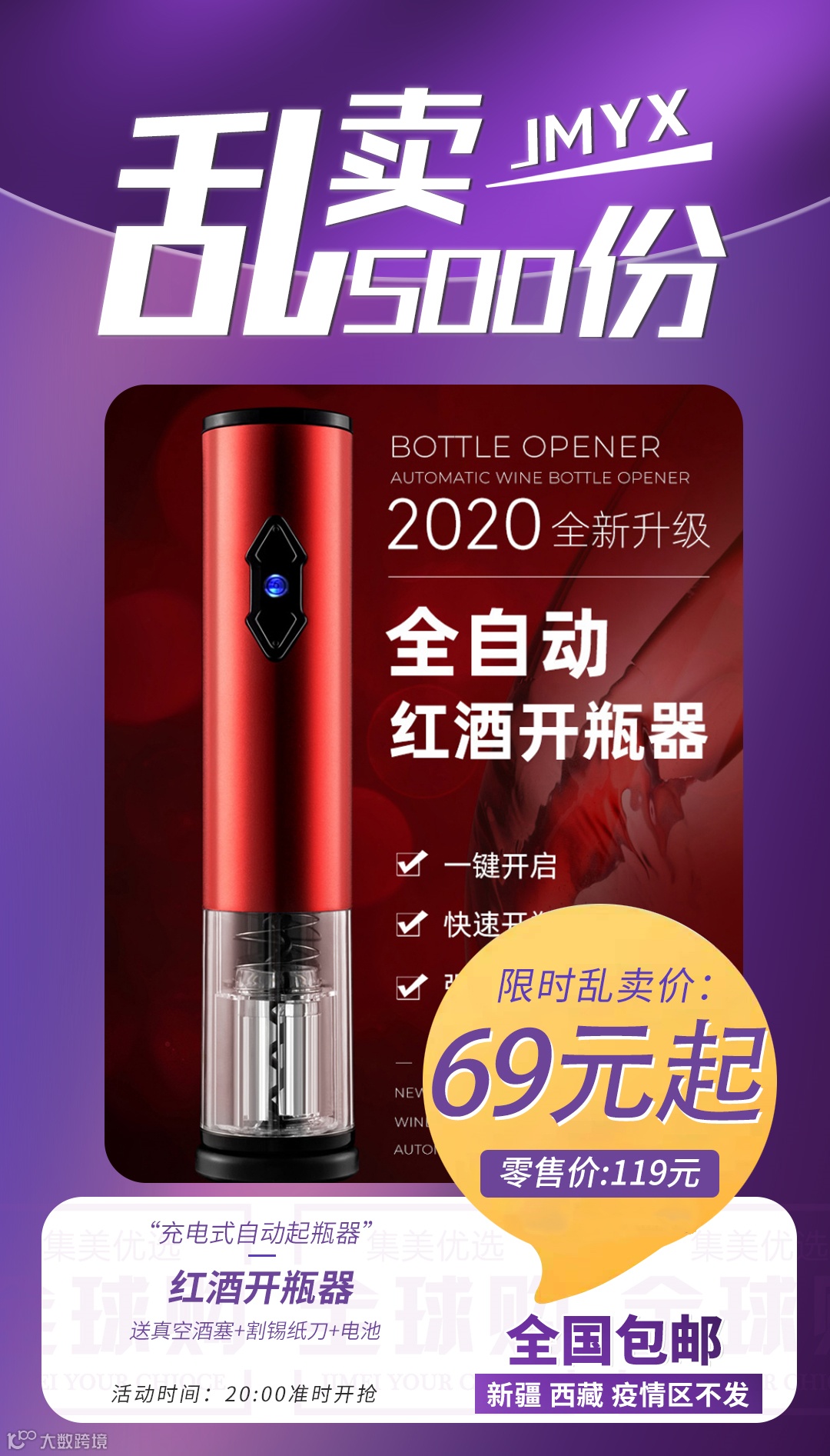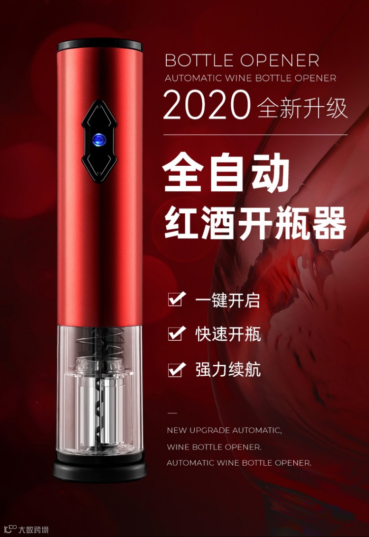 【乱卖500份】红酒开瓶器充电式自动起瓶器(送真空酒塞+割锡纸刀+电池) 原价:119元 粉丝群补贴价:69元起