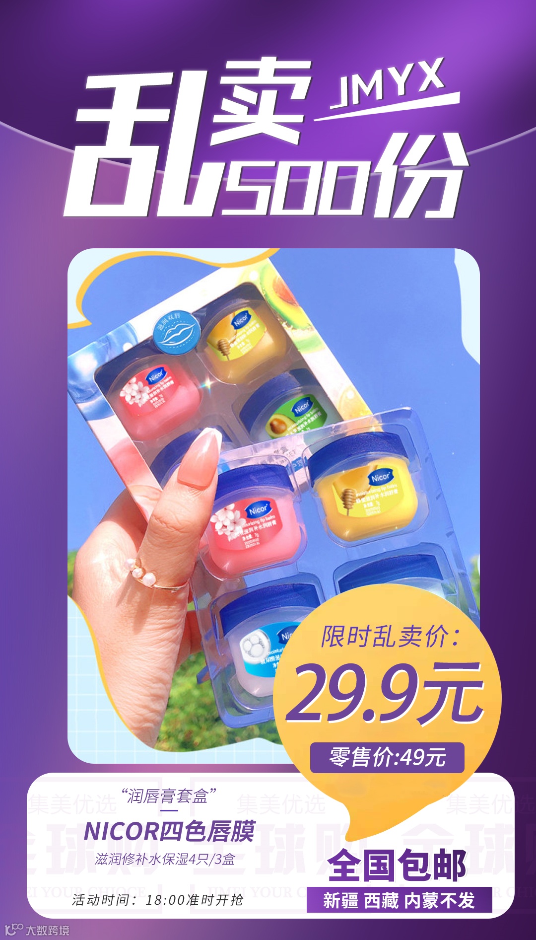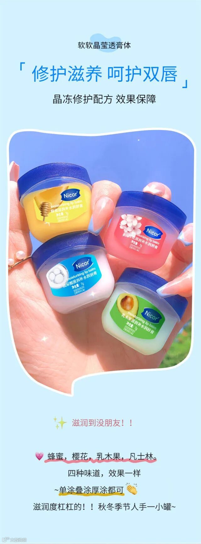 【乱卖500份】Nicor四色唇膜润唇膏套盒滋润修补水保湿去唇纹护唇部护理套装4只/3盒 原价:49元 粉丝群补贴价:29.9元