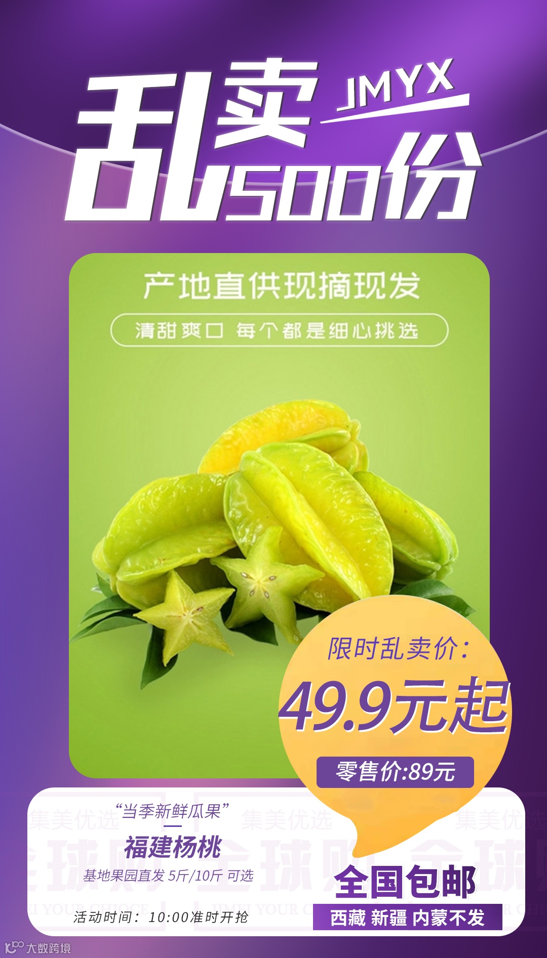【乱卖500份】福建杨桃 当季新鲜瓜果 基地果园直发 原价:89元 粉丝群补贴价:49.9元起