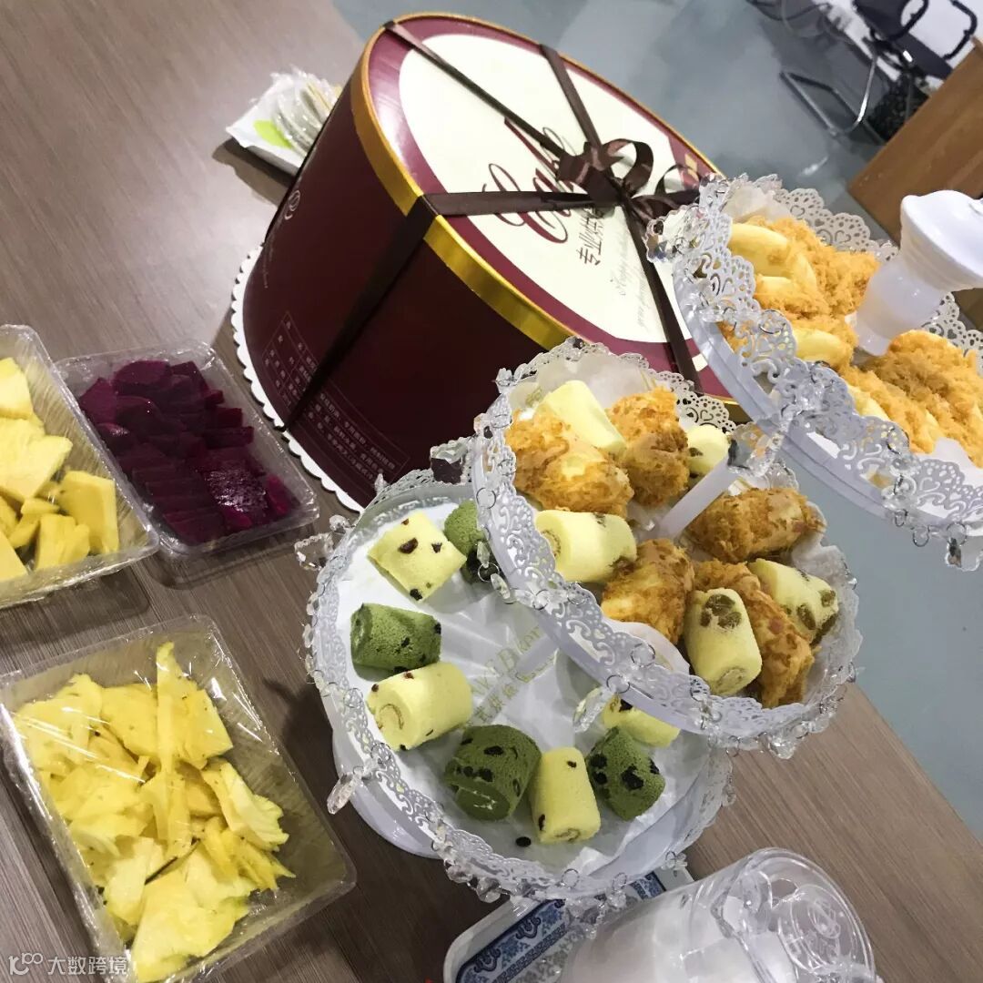 香浓诱人的巧克力蛋糕;柔软的口感、甜蜜的味道,完美的巧克力蛋糕经得起各种口味的挑剔.表面富有曲线美的巧克力花纹与蛋糕的名称相得益彰加上新鲜甜美的水果,世展的小伙伴都忍不住流出了口水。公司福利超级好有木有ヾ(゚∀゚ゞ)