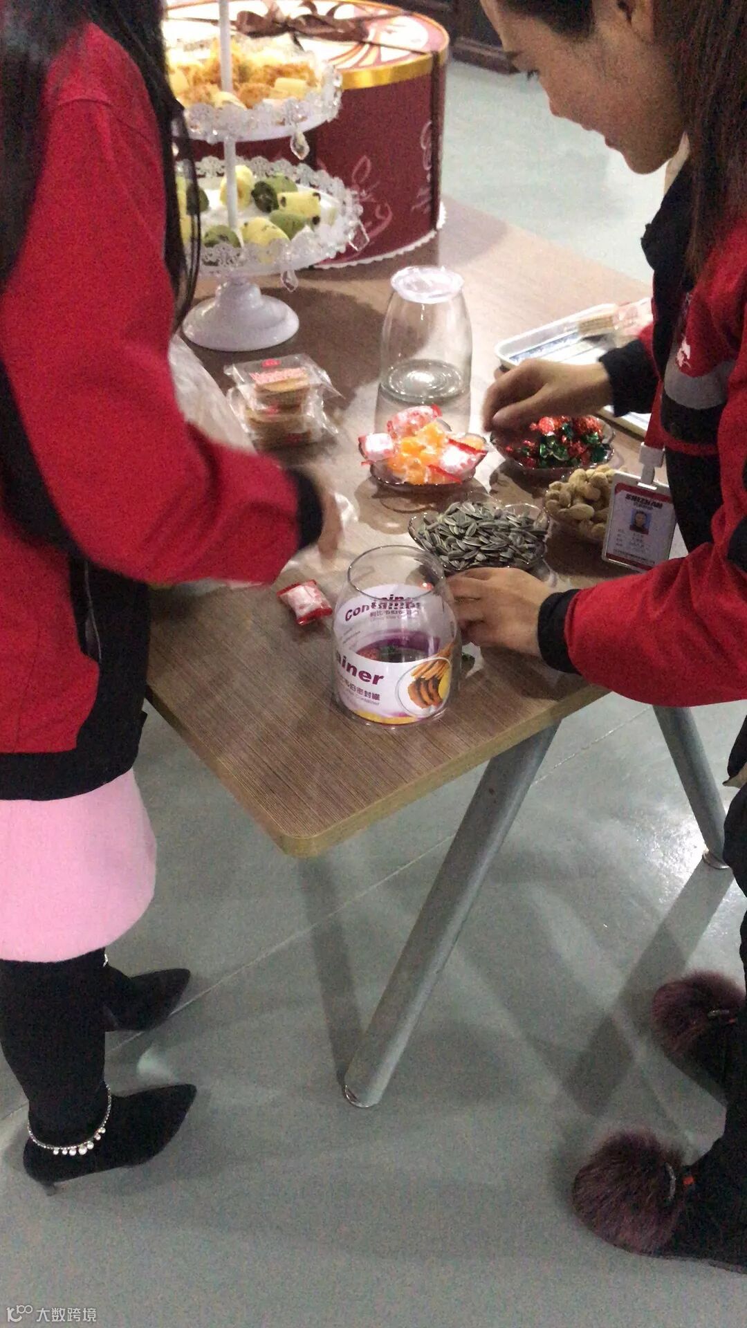 在晚会开始前感谢薛经理跟王经理精心地为大家准备蛋糕茶点和小礼品。
