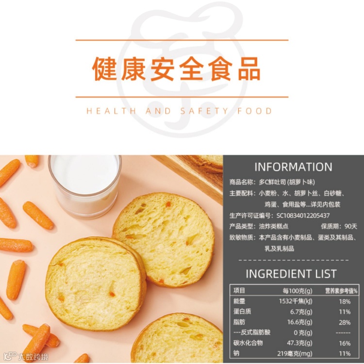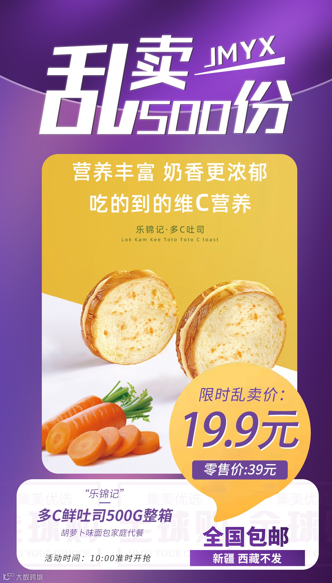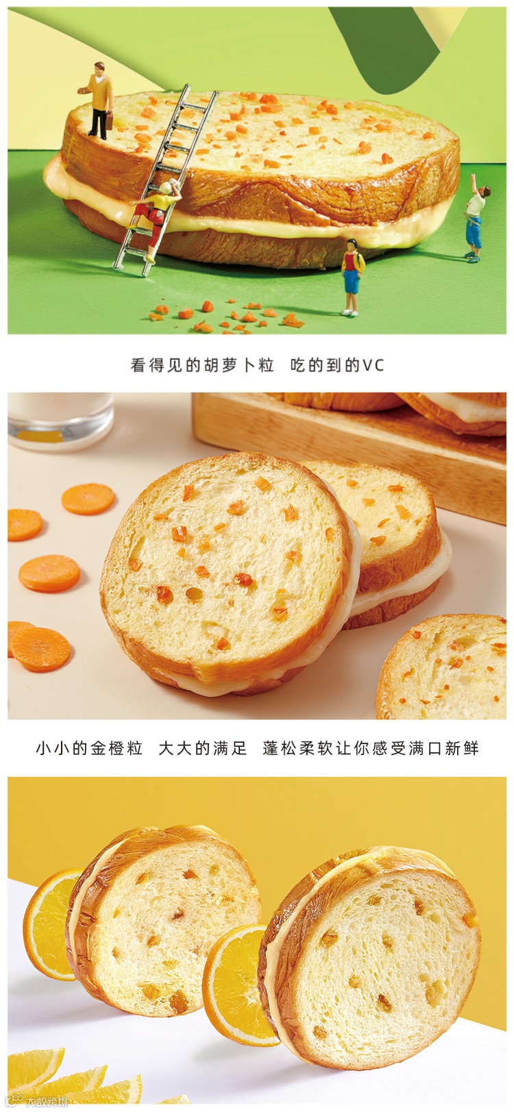 乐锦记 多C鲜吐司500g整箱胡萝卜味面包家庭代餐 原价:39元 粉丝群补贴价:19.9元