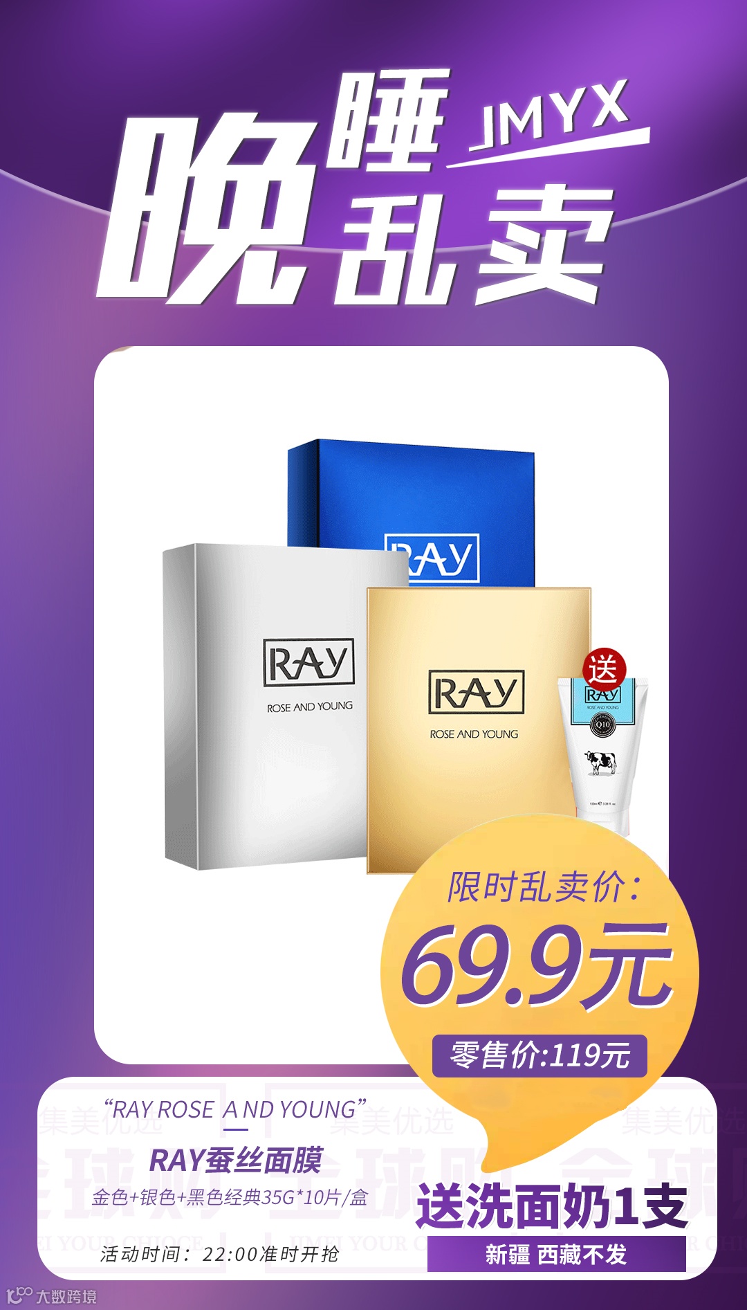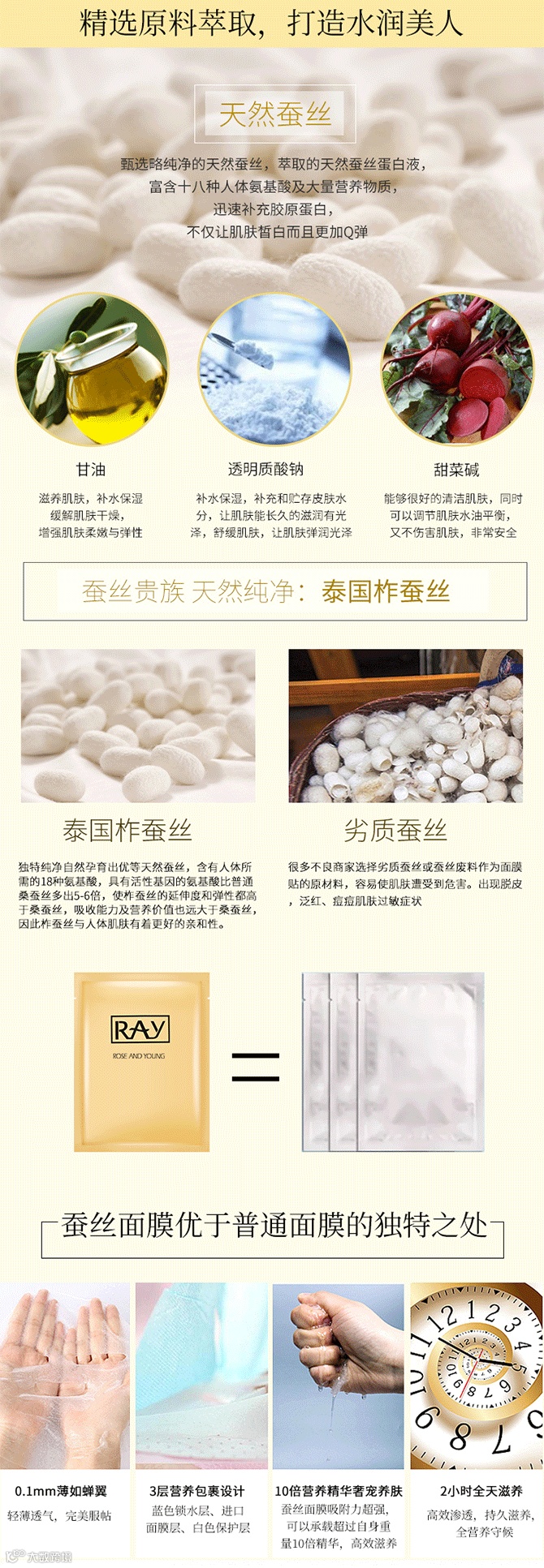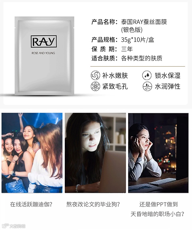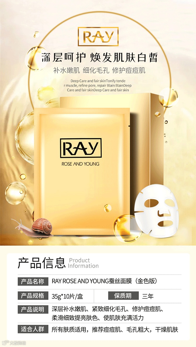 RAY rose And young蚕丝面膜金色+银色+黑色经典35g*10片/盒(送洗面奶1支) 原价:119元 粉丝群补贴价:69.9元