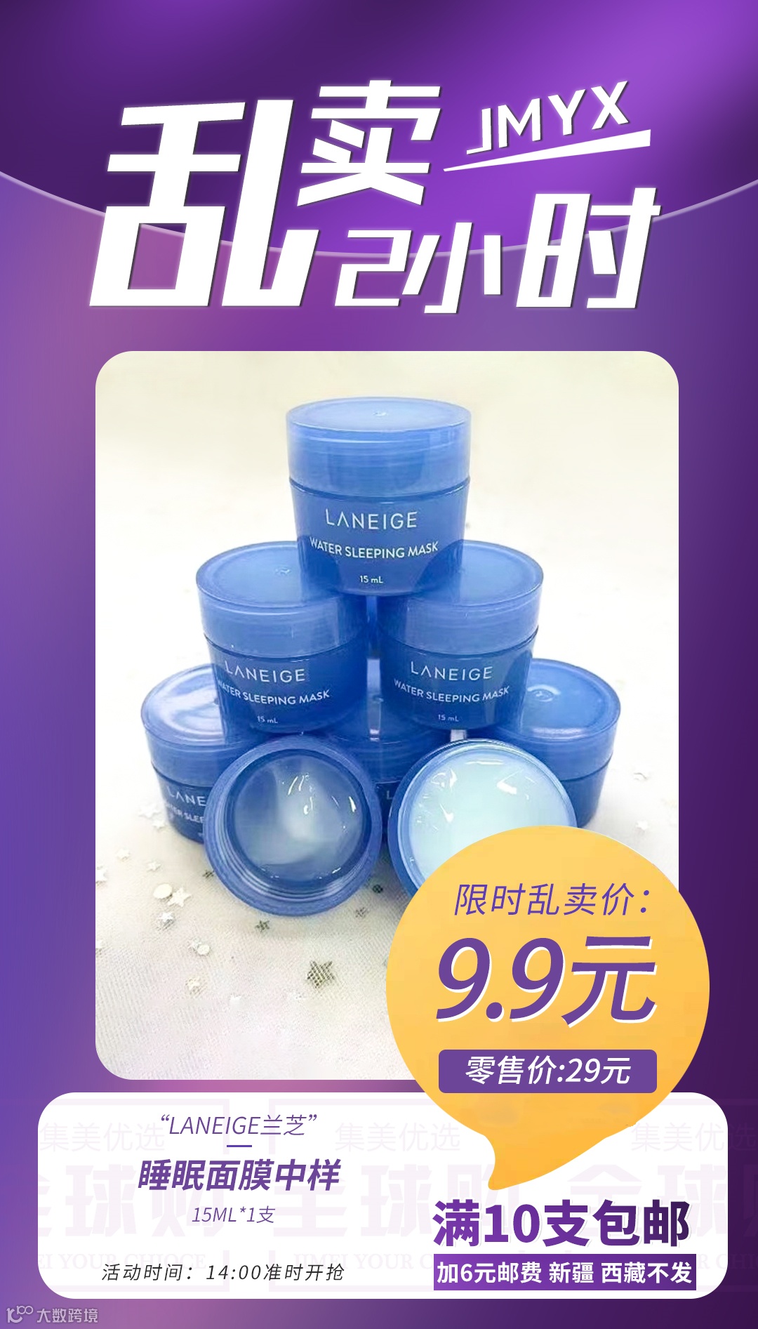 【乱卖2小时·满10支包邮】兰芝睡眠面膜中样15ml*1支 原价:29元 粉丝群补贴价:9.9元