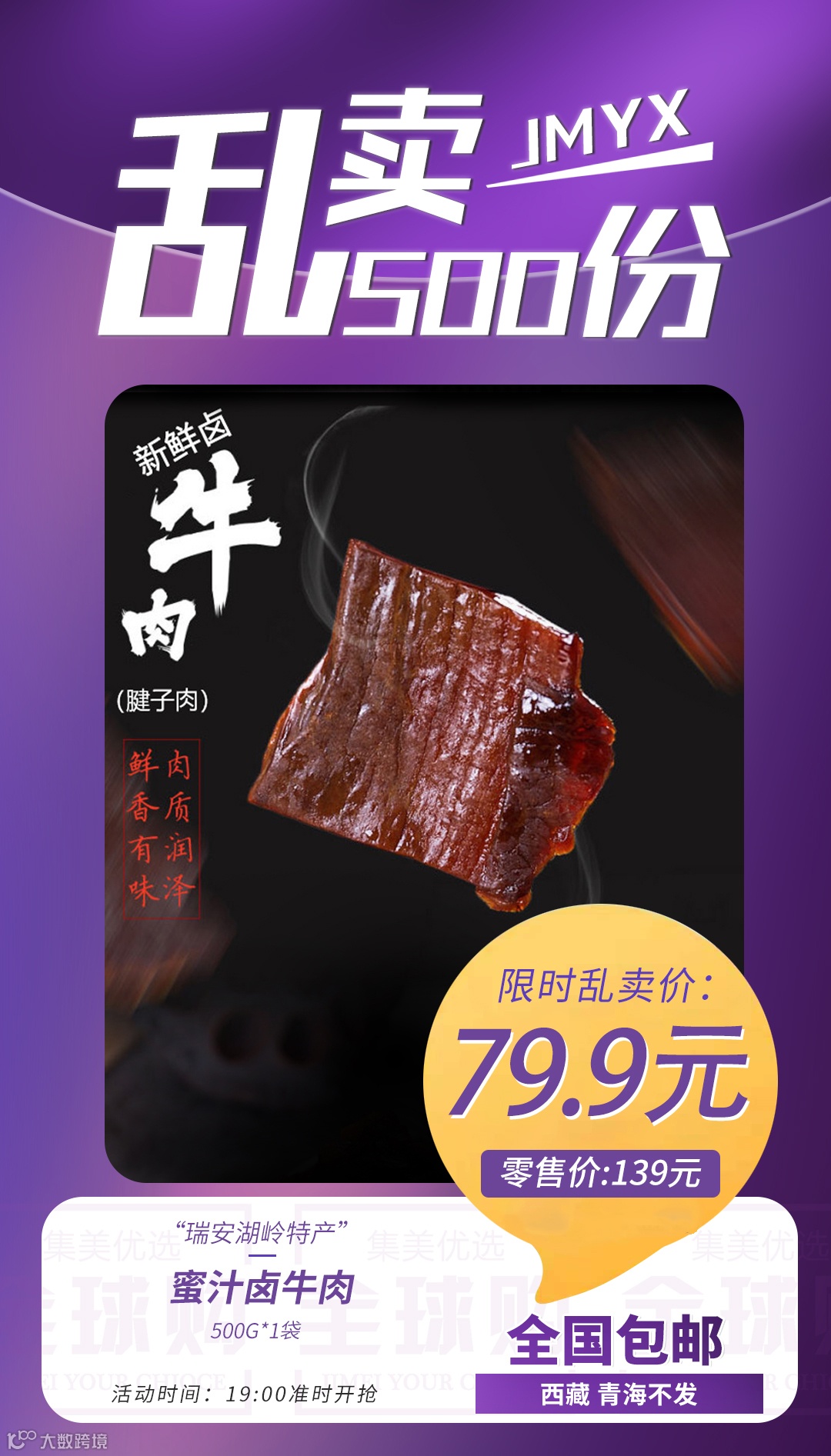 瑞安湖岭特产蜜汁卤牛肉 500g*1袋 原价:139元 粉丝群补贴价:79.9元