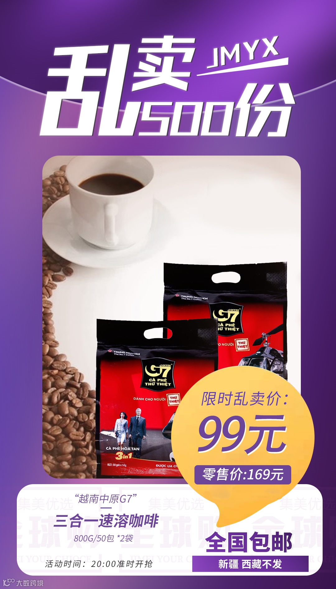 越南中原G7 三合一速溶咖啡 800g/50包 *2袋 原价:169元 粉丝群补贴价:99元