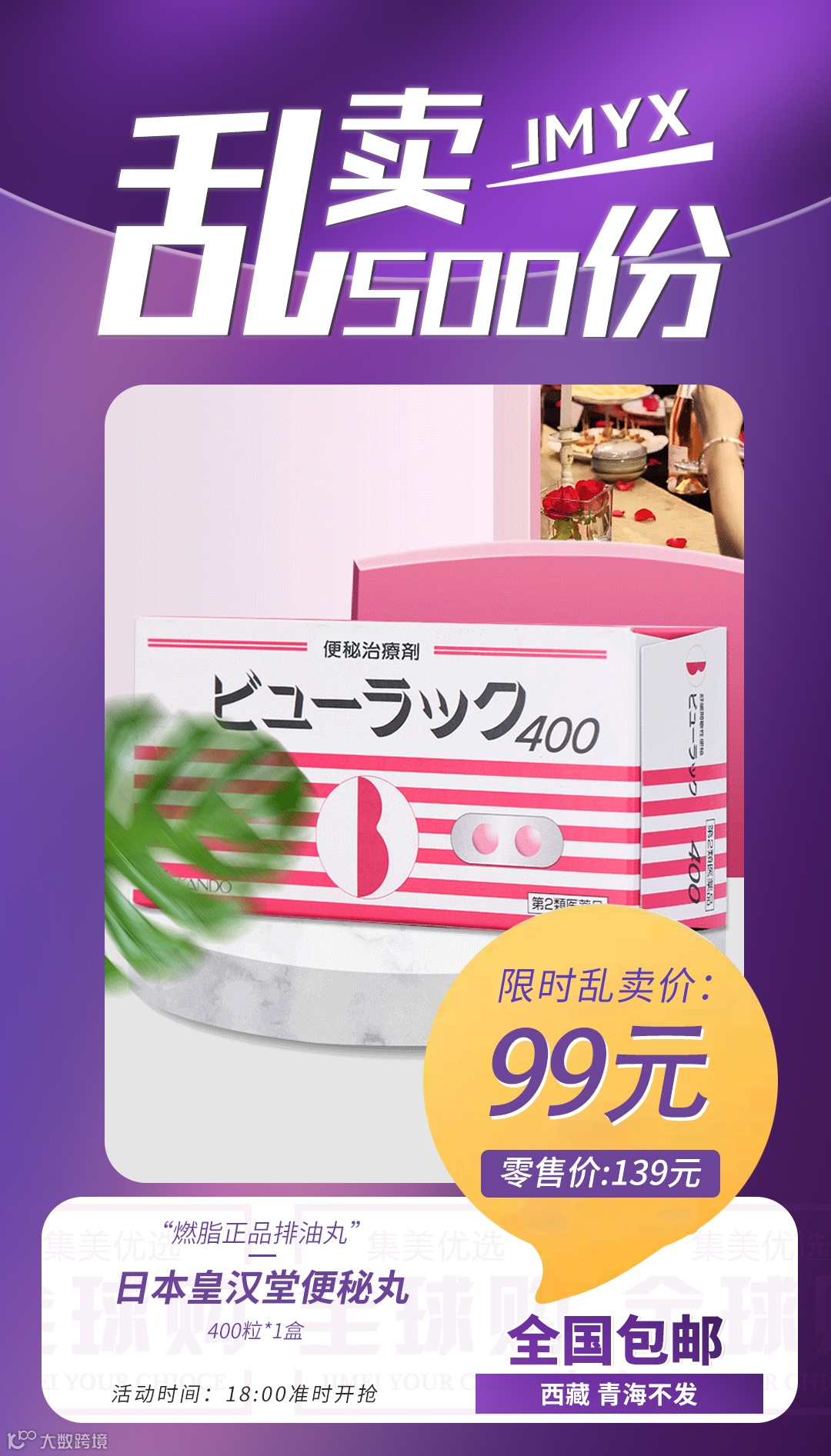 日本皇汉堂便秘丸400粒*1盒 燃脂正品排油丸 原价:139元 粉丝群补贴价:99元