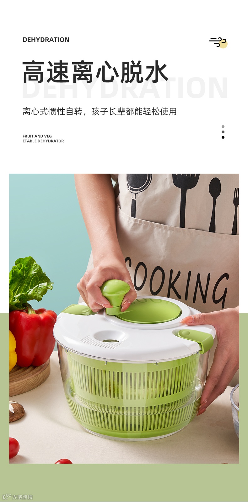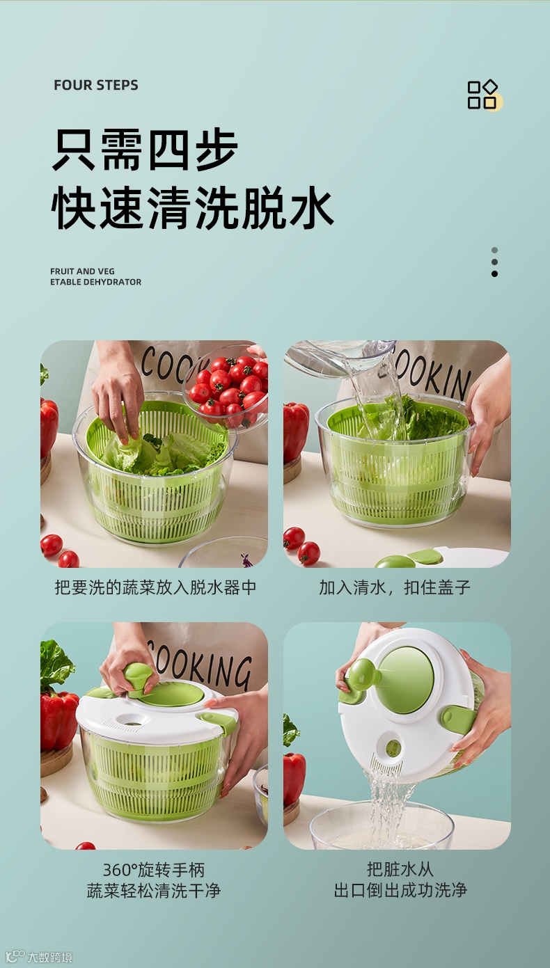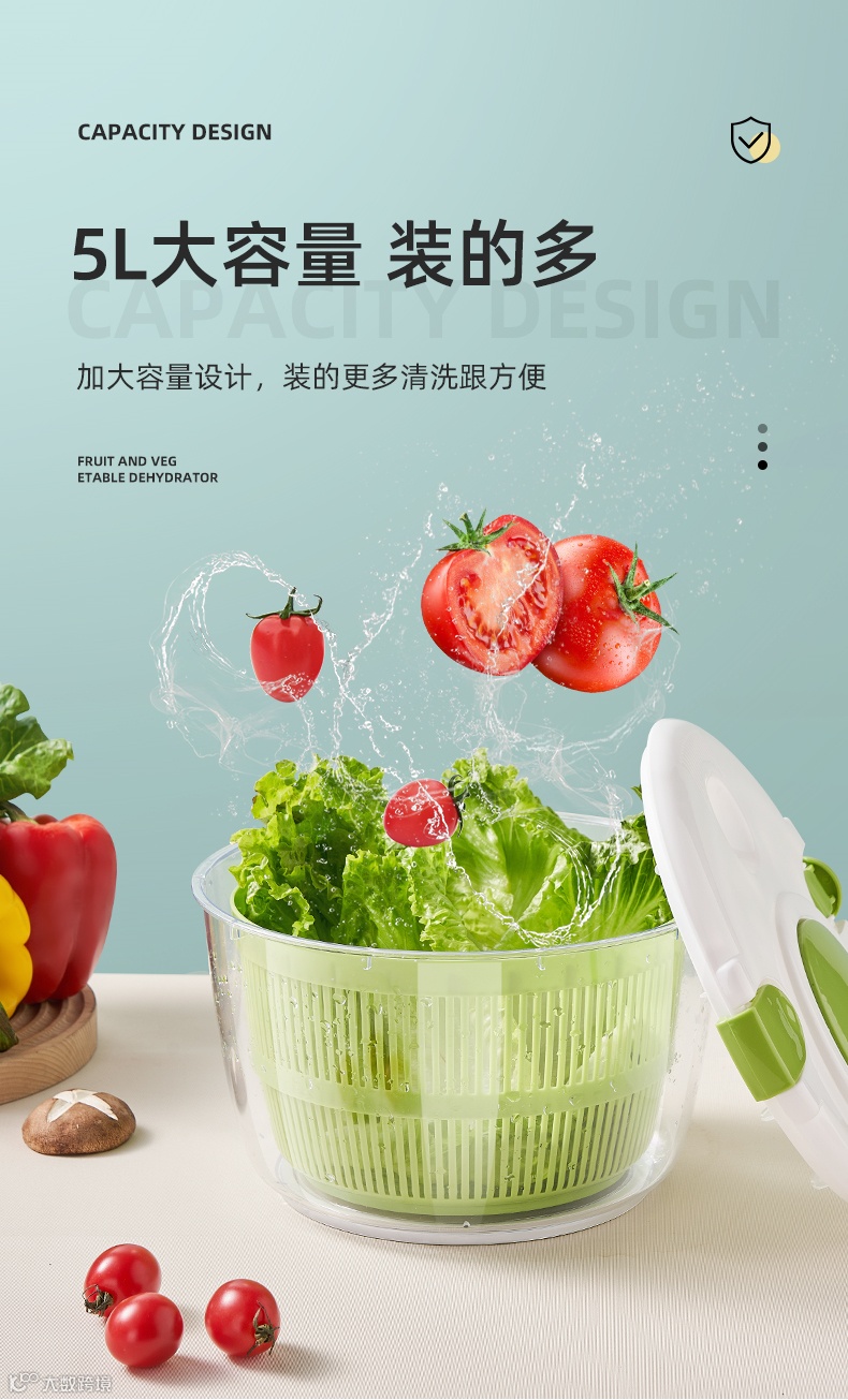 自从发现这款蔬菜脱水器,小迈再也不担心这个问题啦!只需双手轻轻转动,就能轻松帮你解决果蔬清洗、脱水的两大难题!