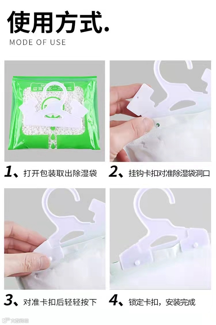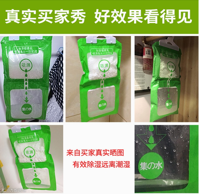 用它给家和宝贝衣服一个保护,把潮湿吸成一袋水,成就满满,吸收的水分都看得见,吸湿量最高可容纳500ML的水分,足以让衣橱等保持干爽。