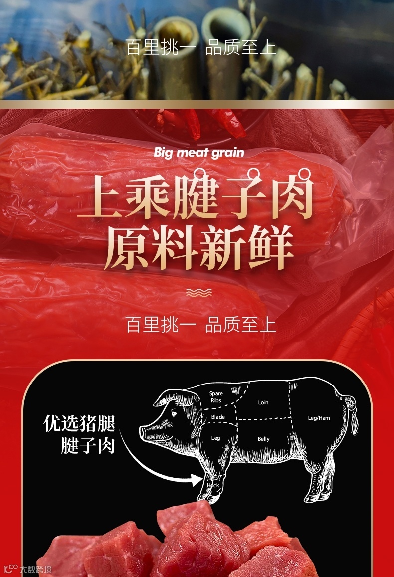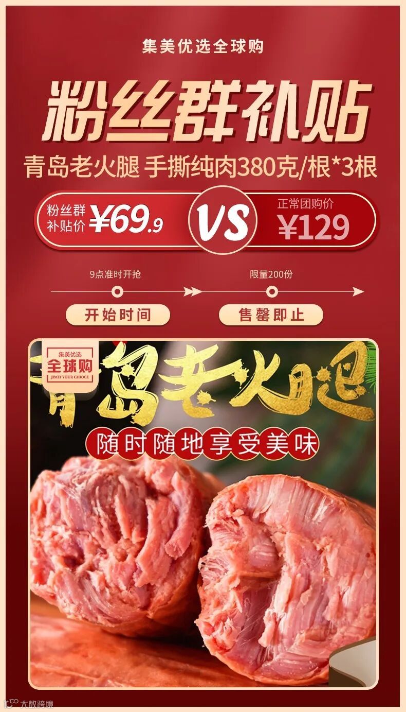 【粉丝群补贴】青岛老火腿 手撕纯肉大火腿380克/根*3根 原价:129元 粉丝群补贴价:69.9元