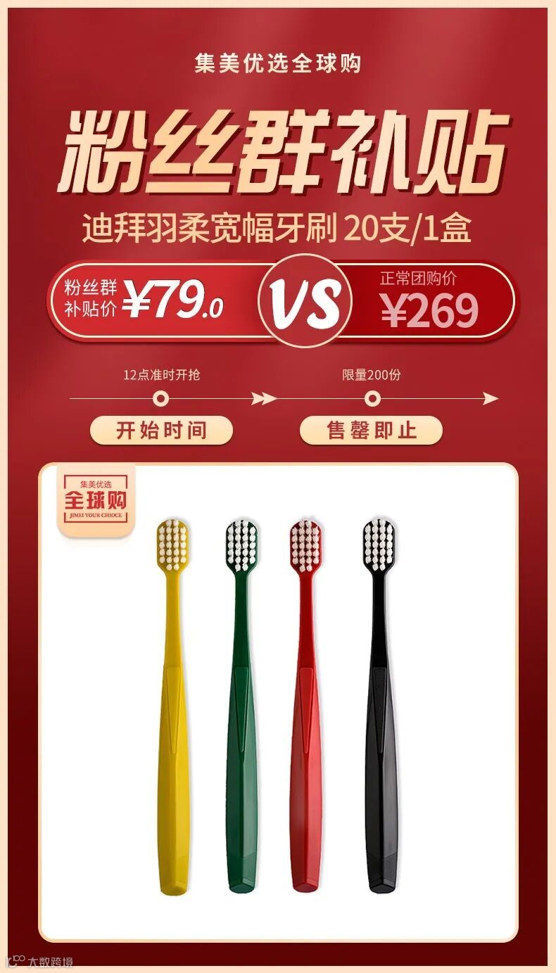 【粉丝群补贴】迪拜羽柔宽幅牙刷 四代 100%进口抑菌刷丝20支/1盒 原价:269元