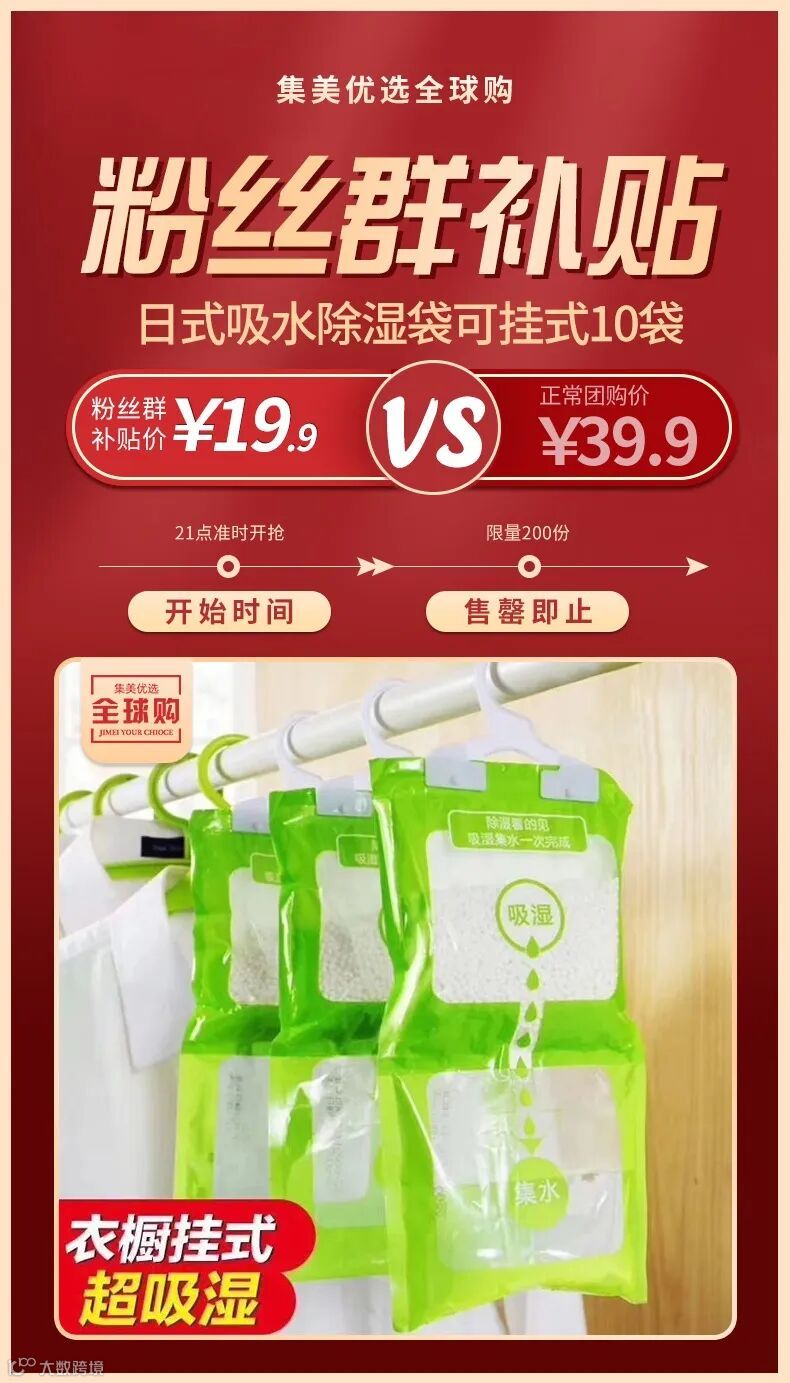 【粉丝群补贴】日式吸水除湿袋可挂式10袋 原价:39.9元 粉丝群补贴价:19.9元