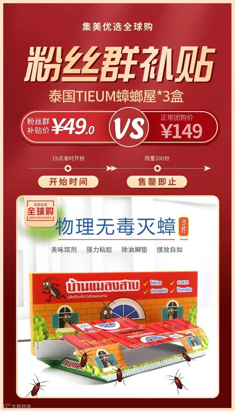 【粉丝群补贴】泰国Tieum蟑螂屋*3盒 原价:149元 粉丝群补贴价:49元