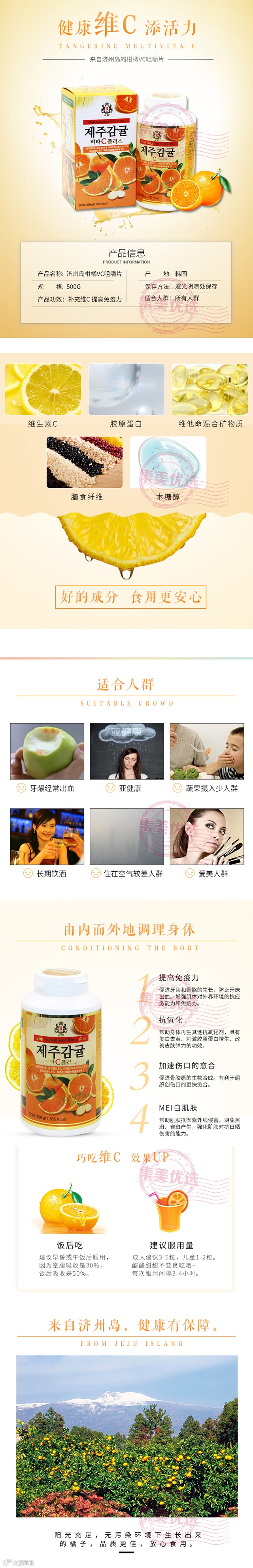 【粉丝群补贴】济州岛天然甜橙综合维生素C片 柑橘VC片500g*1瓶(3种口味可选)