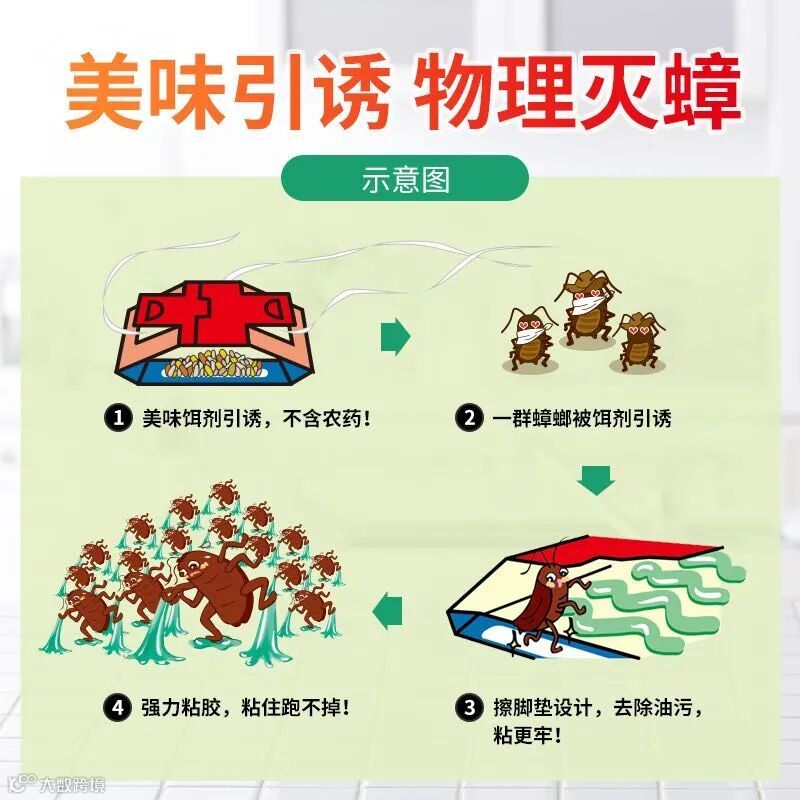 它里面配的引诱剂食物成分制成,只有引诱作用,没有至死成分,所以更加卫生安全,更加方便!