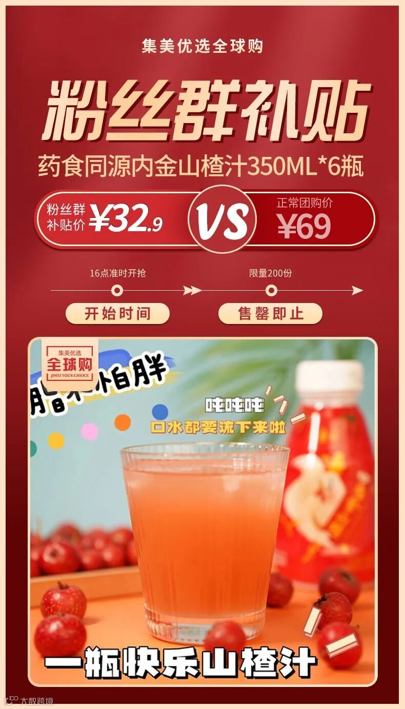 【粉丝群补贴】药食同源内金山楂汁350ml*6瓶 原价:69元 粉丝群补贴价:32.9元