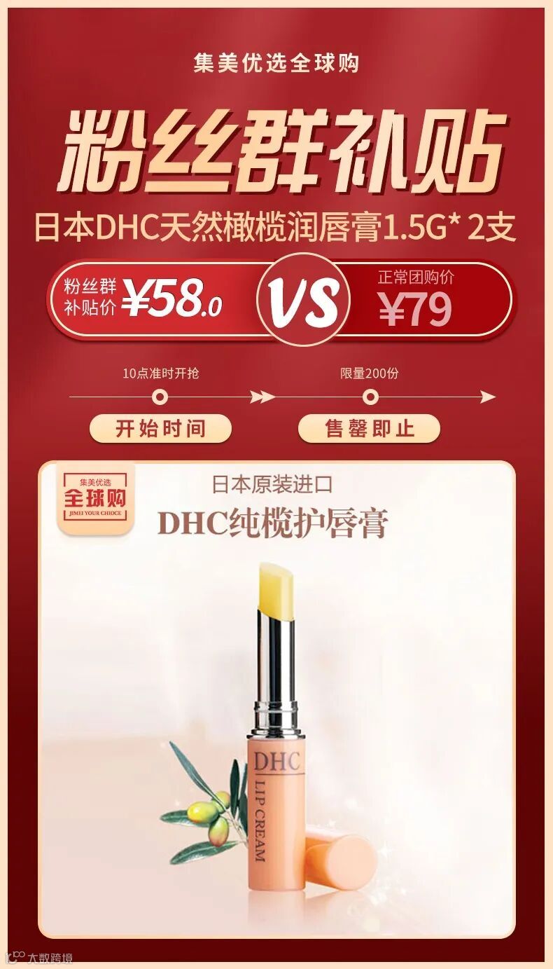 【粉丝群补贴】日本DHC天然橄榄润唇膏1.5g* 2支 保湿滋润无色 原价:79元 粉丝群补贴价:58元