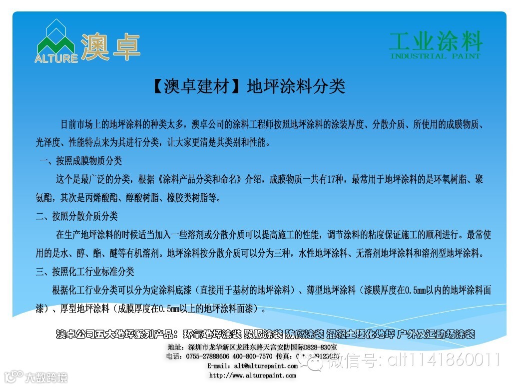 【澳卓建材】地坪涂料分类