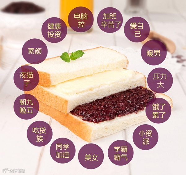 对于上班族来说,能每天多睡十分钟简直太幸福了,有了今天这款美味健康的紫米面包 ,多睡十分钟不再是遥不可及的梦,新鲜的紫米唤醒一天的味蕾,香酥的吐司让你意犹未尽,低脂的乳酪让你流连忘返。早餐来不及吃,没有关系!有了紫米面包,营养美味一包全解决。