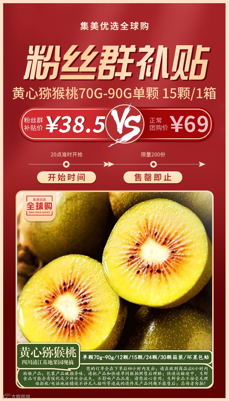 【粉丝群补贴】黄心猕猴桃70g-90g单颗 15颗 原价:69元 粉丝群补贴价:38.5元