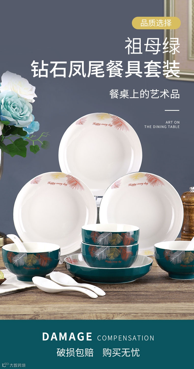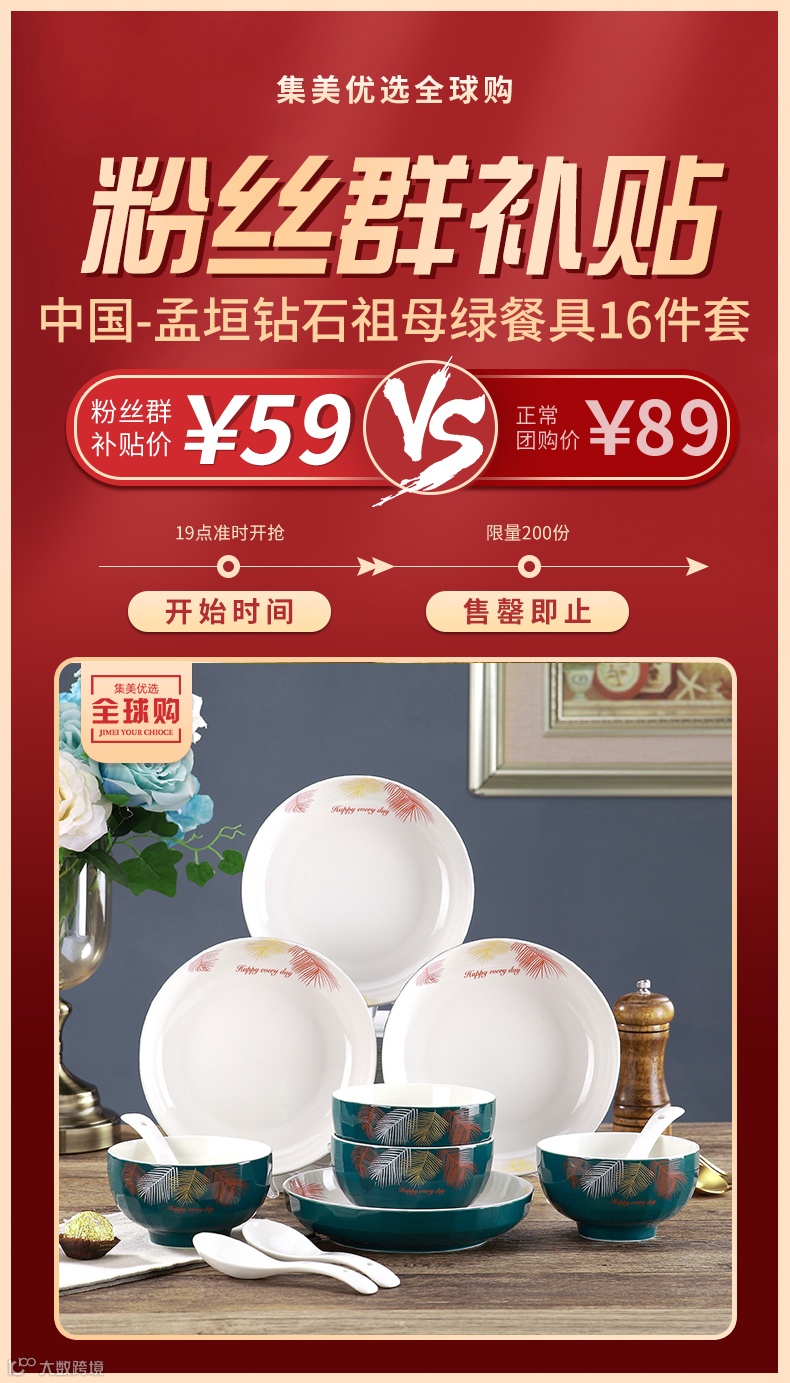 【粉丝群补贴】中国-孟垣钻石祖母绿餐具套餐16件套 原价:89元 粉丝群补贴价:59元