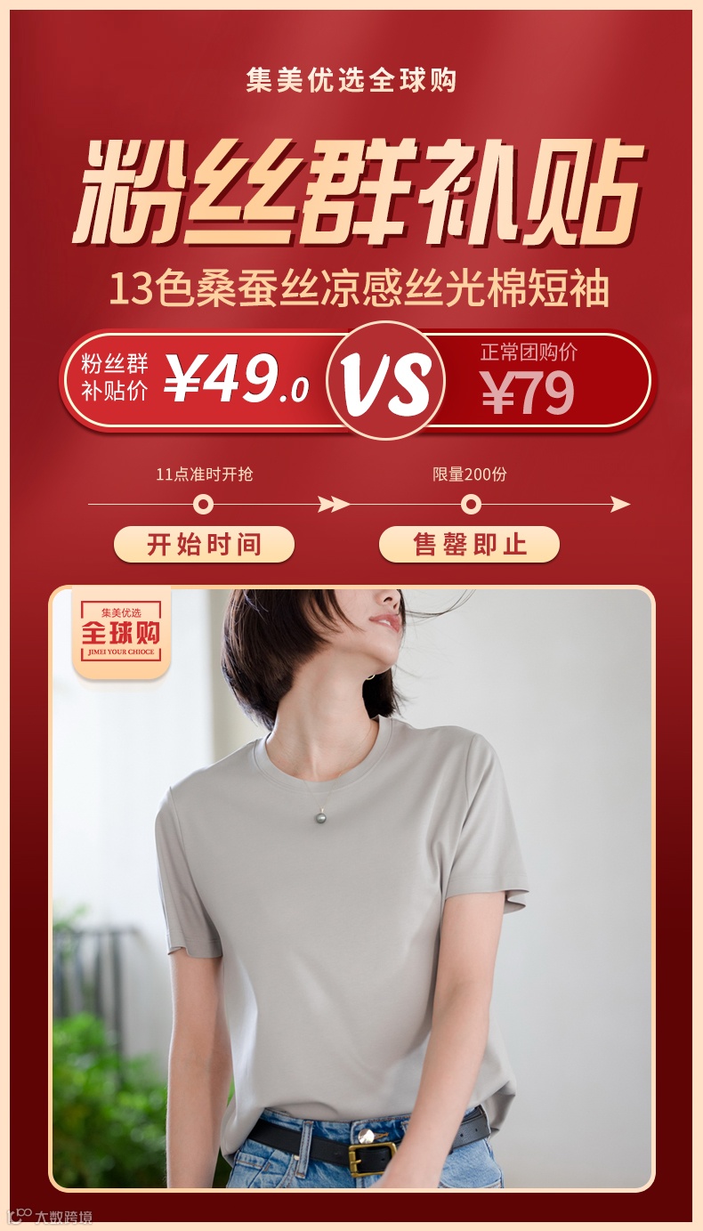 【粉丝群补贴】 13色桑蚕丝凉感丝光棉短袖 原价:79元 粉丝群补贴价:49元