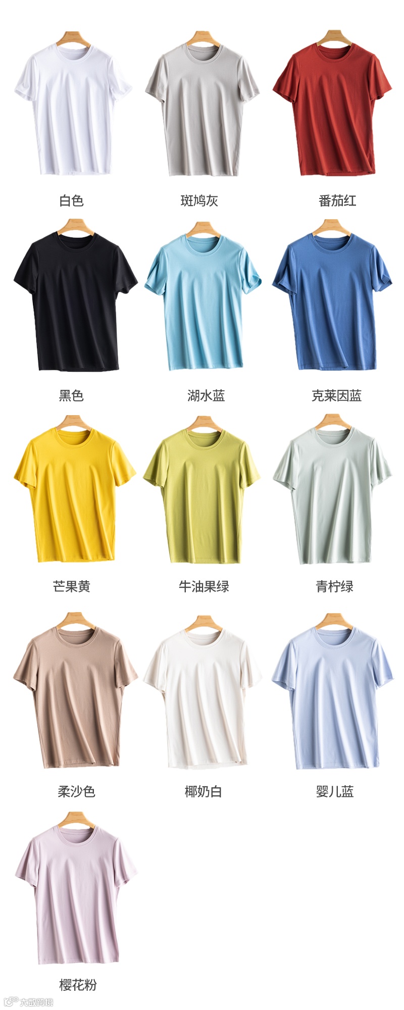 13色桑蚕丝凉感丝光棉短袖