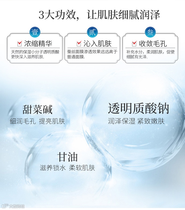 好肌肤是养出来的,妆蕾RAY 蚕丝面膜,天然蚕丝膜布,打造隐形膜布,服贴度百分百,以冷泉水养肤,快速打开肌肤通道,直达肌肤深层促使精华吸收!孕妇、敏感肌也可以用敷十五到二十分钟,揭下来的时候,脸上的皮肤真的巨好