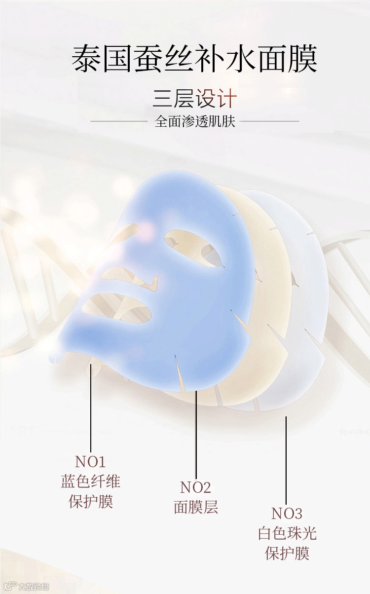 面膜里面足足有三层:一层蓝色无纺布,一层蚕丝面膜,一层珠光膜