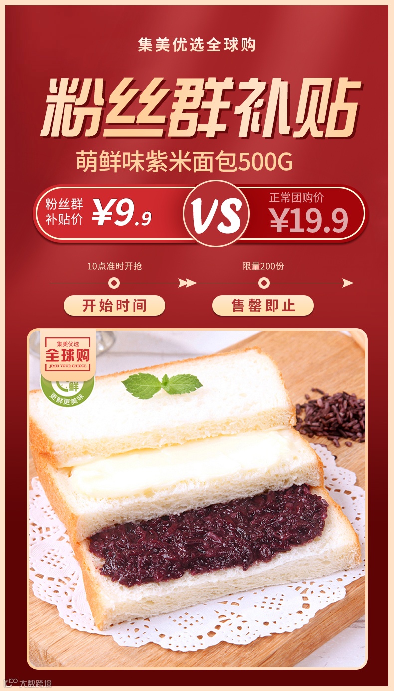 【粉丝群补贴】萌鲜味紫米面包500g 原价:19.9元 粉丝群补贴价:9.9元